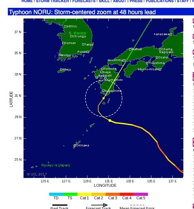 According to TropicalStormRisk.com, our outlook has improved a bit. It looks like the path of the storm has shifted to the southeast. Good news for us, however, is bad news for Kagoshima. The web site is predicting that the cyclone will hit Kagoshima Sunday evening and then move north rather rapidly.