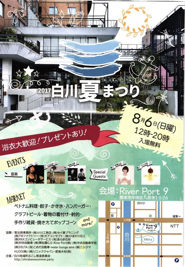 Well, since Typhoon Noru-chan decided to go somewhere else, folks may want to go River Port 9, on the far side of Taiko bashi (the bridge that carries the densha), and check out the Shirakawa Summer Matsuri. – Joe
