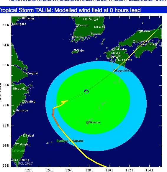 The storm is on our doorstep. The image you see represents current wind strengths according to http://www.tropicalstormrisk.com as of 5 AM Japan time. The site says that we are highly likely to experience tropical storm winds in the next 12 hours. The path is slightly to the south of us, which is good. Earlier this year we experienced a typhoon that came in just to our north, which caused it to have an impact that was disproportionate to its basic strength. Still, it’s hard to know just how bad or mild the situation will be here. Right now it’s fairly calm (light rain, not much wind) but that will change – the only question is how much.