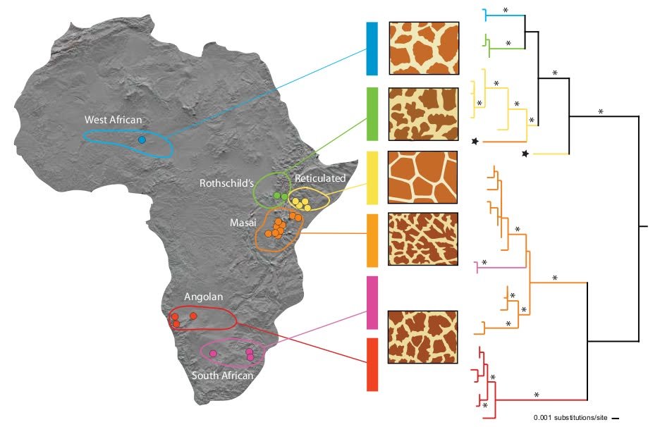 The giraffe is the tallest terrestrial animal. There are six subspecies, each with its own fur pattern (a photo of their fur patterns is below). One subspecies is the Masai giraffe, of which there are only nine in existence in the country spread across four facilities; four Masai giraffe are currently at Kumamoto Zoo.