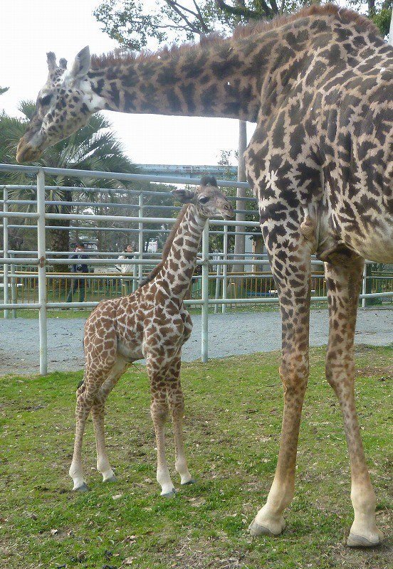 Among these four is Toma (冬真), who was born a year ago and has now reached a length of 3.5 meters and weight of 500 kilograms. Any bigger and giraffes become difficult to move, so now that Toma is weaned, he will be sent to live with a female at the Phoenix Natural Wildlife Park in Miyazaki in November.