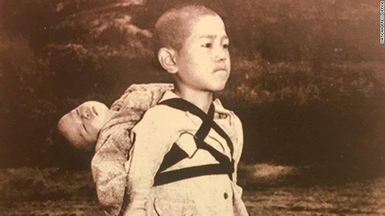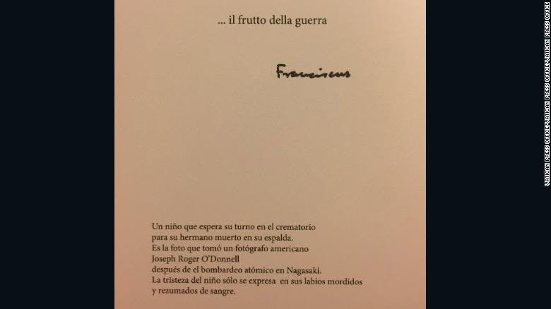 Pope Francis recently made an unusual act of issuing official cards with a photo of a boy carrying the corpse of his sibling, a result of that tragedy, marked with “the fruit of war” (“il fruito della guerra”) along with his signature “Franciscus.”