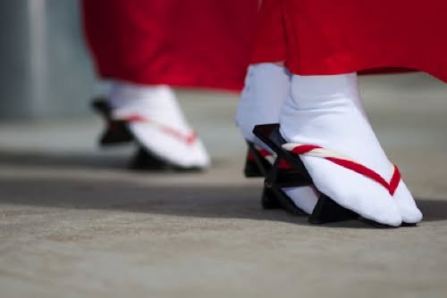 - Footwear. Wearing sneakers is inadvisable. Two types are available: zouri (草履, vinyl slippers) and geta (下駄,wooden clogs, both pictured). These are a must.
