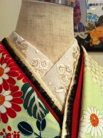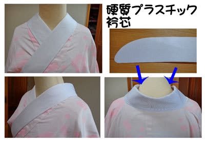 - Eri shin (collar core, 襟芯, pictured): this is designed to keep the collar of your kimono fashionably away from the back of your neck, a view of which is considered attractive. (Also optional.)