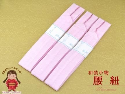 - A few waist cords (koshihimo, 腰紐, pictured). These are necessary. The obi is mostly decorative, and these slender strips of cloth do the work of keeping your kimono from bursting open. They are cheap; you can even make your own.