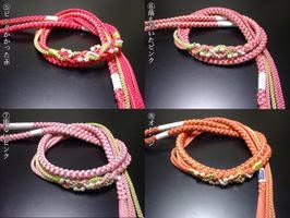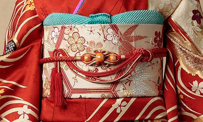 - Obijime (帯締め, pictured) are decorative cords worn over the obi.They’re pretty much required.