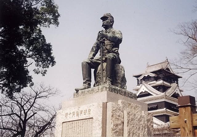 Sadly for their friendship, the paths of Tateki and Takamori soon parted. Tateki was given a stipend and became a general under the Meiji government responsible for the Kumamoto area, while Takamori sat stewing in Kagoshima over how disrespectful all the young kids had become (still no ‘staches, see). So in 1877, when Takamori decided to march on Tokyo and set things in a way he thought right, he found himself facing a now fully mustached Tateki in his path - and he lost. That was the Seinan War (西南戦争).