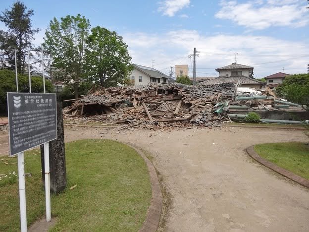 But then it was the mansion itself that was forced to wander, as the map included in the attached Kumanichi article shows. It first was moved to where the Central Kumamoto Police Station now is (reminder: never argue with the police), then to where Melupark (a post office hotel/event hall; reminder: never argue with your postman) now is, and finally in 1970 to a secluded spot behind Suizenji Park (you can argue with monks), where it remained until it completely fell down during the quakes.