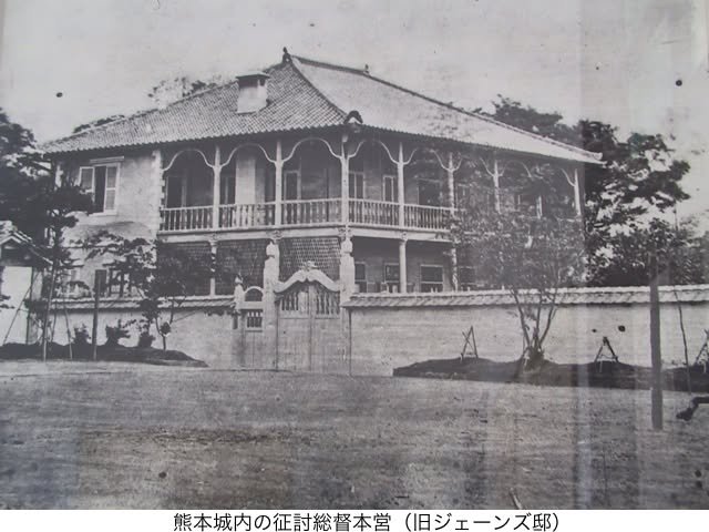 Two problems existed with the location, however: It occupied valuable military space, and it housed a westerner, so in 1876, reactionary elements forced Kumamoto Yōgakkō to close, and Janes, together with several his students, fled to Kyoto, where they joined Dōshisha. Janes returned to the United States in 1878. Timing couldn’t have been better for that burst of xenophobia, though, as most of the area was destroyed during 1877’s Seinan War. (The Mansion miraculously survived.)