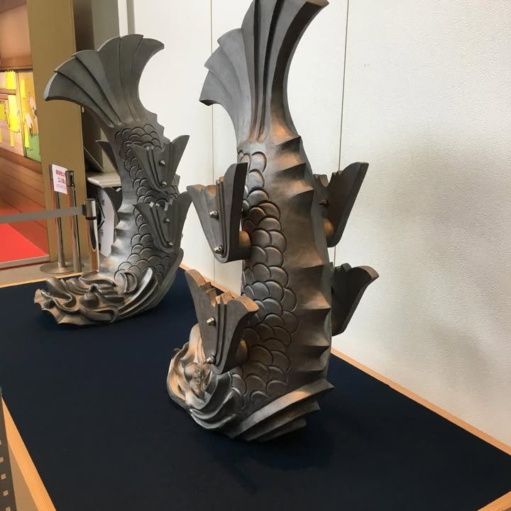 For those interested, shachihoko are from Japanese folklore. They are mythical fish that have the head of a tiger and the body of a carp. It was believed that shachihoko could cause the rain to fall, so castles and temples often used them to protect against fire.