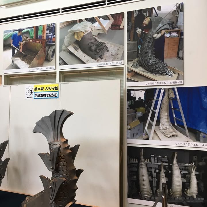 Until the 28th, you can see the new しゃちほこ 鯱 that will be placed on the roof of Kumamoto Castle (maybe in March or April, my friend wasn’t sure). The roof is almost finished and they’re planning on removing the white cap and displaying the complete roof, adorned with the shachihoko for all to see.