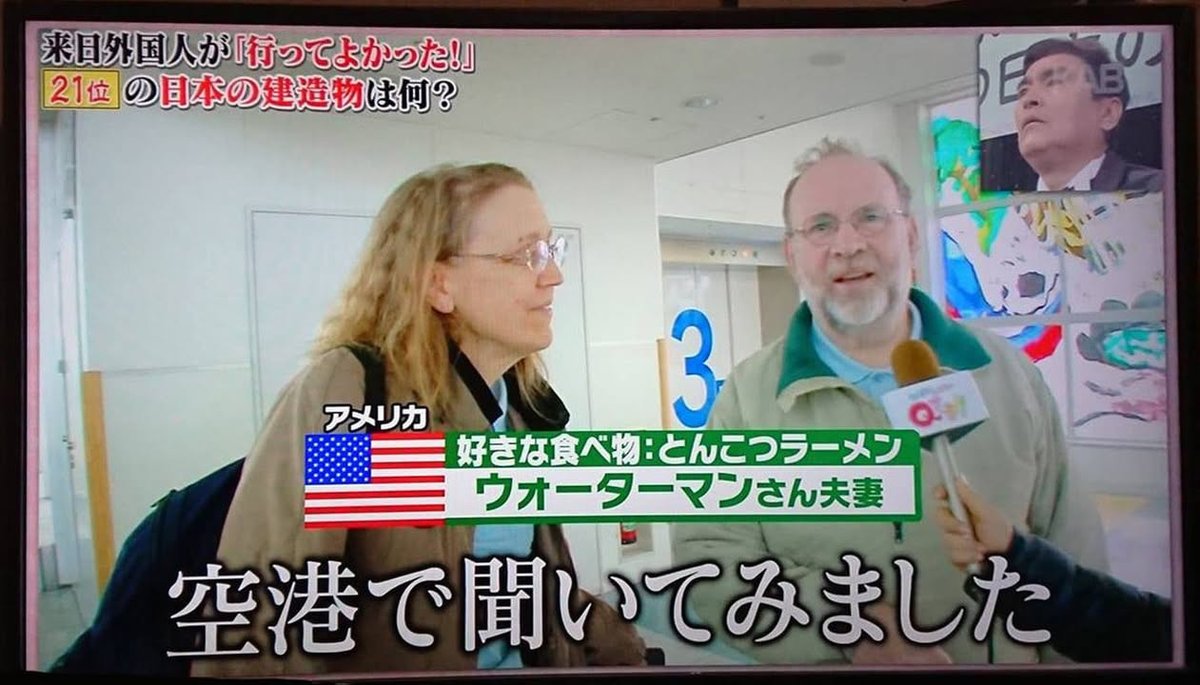 Kumamoto International regulars Julie and Charles Waterman were interviewed on Asahi TV’s “Q-Sama”: