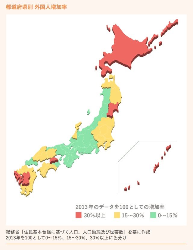 The NHK website doesn’t explain properly that most of these people are “trainees” (gino jisshusei; 技能実習生). The “trainee” system is controversial because Japan is essentially using it as a work around for its prohibition on manual labor. People come from Asian countries to do low-pay work, but that’s OK, supposedly, because they are “trainees” not laborers. The gap between this fiction and the reality of the lives led by the trainees is quite problematic.
