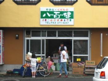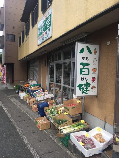 For this week’s place, all of you are aware that one reason produce is so much more expensive here in Japan is that stores demand that fruits and vegetables have no cosmetic flaws-discoloration, slightly misshappen, or other things that have nothing to do with taste, just with the appearance. So what happens with all those fruits and veggies? Well, today’s FPF, Yaoken (八百健) is a small shop that gets that produce from local farmers and sells it at much lower prices.