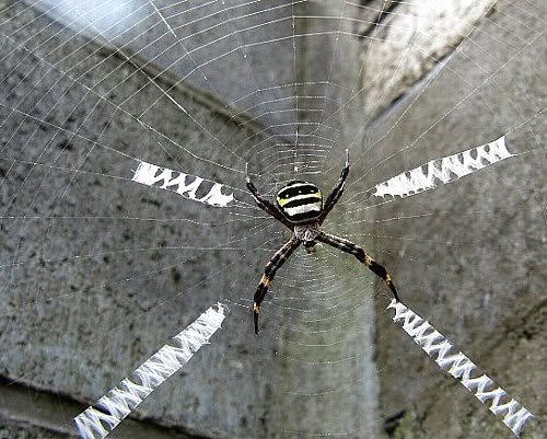 As an arachnophile, spiders enjoy free range in my house until my daughter, a pronounced arachnophobe, returns home, who at which time, regardless of my or the spiders’ feelings, I must expel (the spiders, not my daughter). One such request today introduced me to a species hitherto unknown to me but which a Wikipedia search revealed to be a Argiope amoena, called in Japanese the コガネグモ (黄金蜘蛛, kogane-gumo), or, according to my daughter, “a really friggin’ big cross-shaped web spider monopolizing the corner of my room.” Wikipedia notes that they are harmless to humans but can consume prey up to twice their size, which again reminds me of my daughter. She (the spider) was ushered outside at the tip of a broomstick, which was likely not ideal for her as the species is a favorite of wasps but did quiet my daughter, at least for the moment. Below is a photo for reference. - William