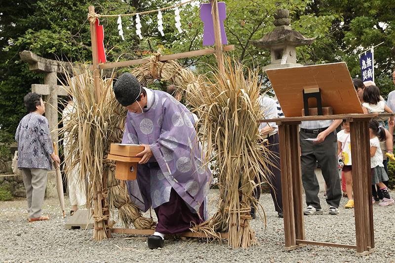 The event used to be held according to the lunar calendar but is now fixed on June 30 and is said to date back to Izanagi (「伊弉諾尊」), the male deity who, according to Shinto tradition fathered Japan, the sun, and the moon along with his female counterpart Izanami (「伊弉冉」). The purpose is to purify and protect oneself for the second half of the year and involves conducting a chinowa-kuguri (passing through a hoop made of kaya grass, though other material, particularly bamboo, is often used) (「茅の輪くぐり」).