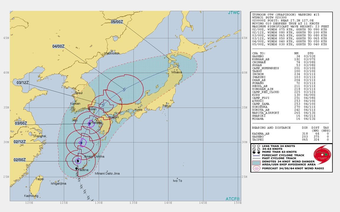 Quick update on the typhette. As I’d suspected, it is erroring east and is currently expected to pass over Nagasaki between midnight and noon of the 3rd. Again, it’s small, so there’s no need for alarm, but a bit of wind might be expected. - William