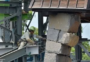 The turret itself has been carefully dismantled and stored away, and Kumanichi reports that work to dismantle wall remnants for restoration, including that famous column, began today and is expected to conclude in March, with rock by rock to be carefully winched down to safety.