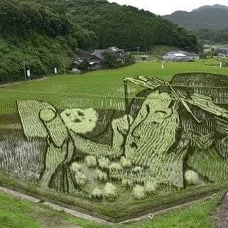 Kumanichi notes that some rice farmers in the Yamaura district of Kyouragi in Kamiamakusa’s Matsushima Machi (Yeah, that’s a mouthful: 上天草市松島町教良木の山浦地区 - just コピペ this if you head out there and show it to the locals for guidance) have reproduced a famous Kitagawa work using six strains of rice to create color variances. (Considering the large amount of Edo-era pornography Kitagawa produced [Google!], the choice was felicitous.)The location is close to a hill, allowing great photography. It will be on display until hunger overwhelms aesthetics. - William