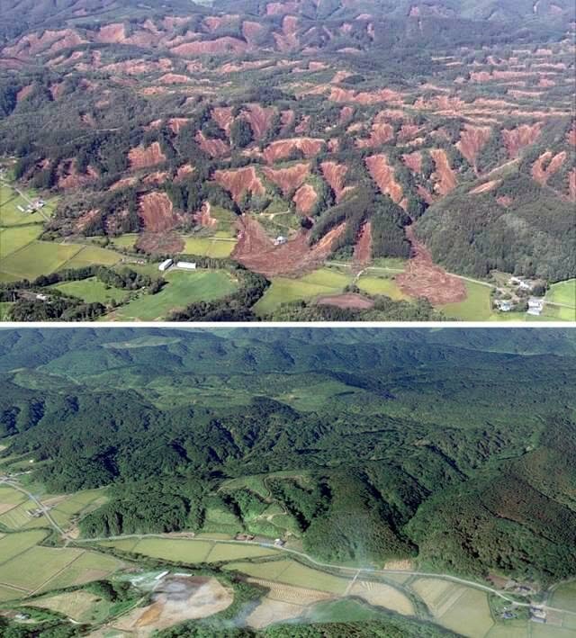 A composite photo illustrates the magnitude of the landslides caused by the Hokk…