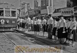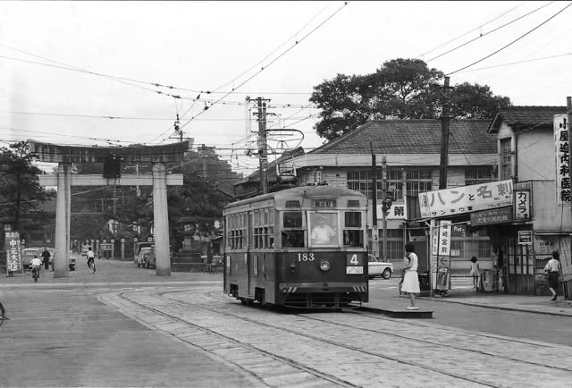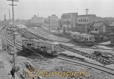 Long ago, people didn’t have to walk more than a few steps from their house before work presented itself. Then the industrial revolution invented commuting. This, those in charge decided, required public transportation, and thus, in 1916, the Kumamoto tram system was created. Over the years, it has expanded and contracted - recently mostly the latter, as cars and buses have taken over most of its clientele - but it is still hanging in there with its main line from Kengun dividing into the Kitakumamoto and Tatsuki stations at Karashima (I hope they finally get around to extending the line to the market itself, and a spur to the zoo).