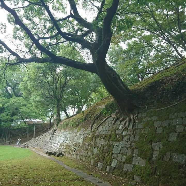Sometimes trees choose to grow on a wall. Despite having been repeatedly asked, the trees have not elucidated their reasoning. Maybe it’s just fun. (More likely, it’s that birds stash seeds in the crevices between rocks and forget them because birds are stupid.) Two good places to observe this phenomenon are the castle walls south of Gebabashi and the northern bank along Shirakawa between Meigobashi and Taikobashi (which was left as is during restoration precisely to preserve the trees). Our friend Shiiba Michiko has provided a photograph of the former location. - William