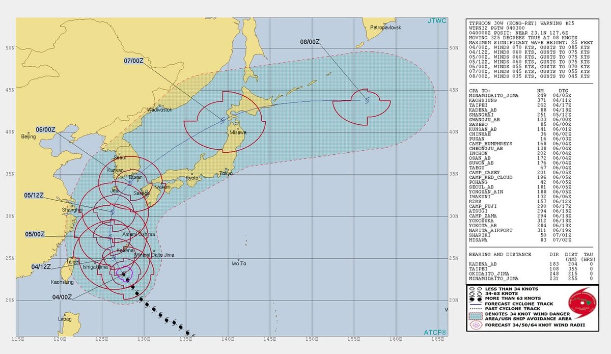 This guy goes by a few names. Japan only counts typhoons which form in the west Pacific, so it’s No. 25. The U.S. Navy counts all (there’s one in Cabo San Lucas now sending tasty waves to my hometown), so it would be No. 30; the U.S. also, for some reason (maybe an affinity for pets?) gives them names, so it would be “Kong Rey.” I can’t find the etymology, but the name sounds scary.