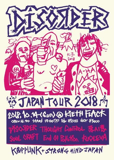 Soulcraft which is probably Kumamoto’s most prolific hardcore band is playing with the UK’s own Disorder next week on Sunday 10/14 at Kieth Flack in Fukuoka(North Tenjin area). Disorder is D-beat which is a mixture of hardcore and metal with a decidedly left wing bent on lyrics(Thank you Thatcher!). The order of things goes Crass,Discharge and then Disorder. Also on the bill is “Ai”…And they are Kitakyushu street punk. I worked in Kitakyushu for 3 years and it wasn’t easy. As Kitakyushu people say,”We got steel in our blood…”. The show starts at 5 pm and I am sure the crowd will be more than lively. Don’t forget the last night bus for Kumamoto is 2030 yen and leaves at 11:40pm.Kieth Flack is about a 15 minute walk from Tenjin Station. I will be in the future posting more music items of all genres and styles that encompasses Kumamoto, Fukuoka and other parts of Kyushu. Jay