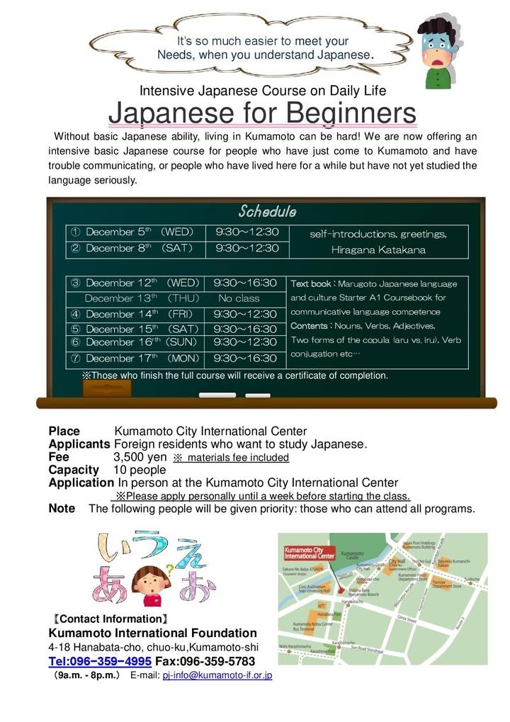12月(がつ)から 初級日本語集中講座(しょきゅうにほんごしゅうちゅうこうざ)が はじまります!