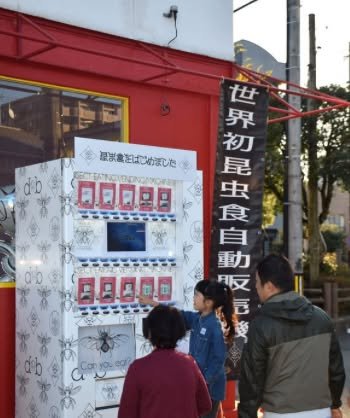 An article in the Kumanichi says that the vending machine can be found on the Kokai Shopping Street (Kokai Shotengai) where it is a “mushi dekinai” item (a pun on the word “mushi” [insect] and the expression meaning “cannot be ignored”).