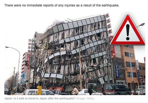 Here’s an example of a visual message and text message that say very different things. Kumamoto is mentioned in this misleading article: