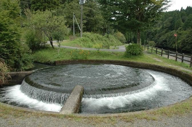 In 1854, some thought directing the flow of Yabe’s Sasawaragawa river in two directions would be useful for agriculture, but the problem of dividing a rushing, highlands river was problematic. They settled on a circular diversion fountain in which the incoming water is slowed by forcing it up a pipe and then divided into two sections (an examination of the photo will clarify this). The majority of water which passes through the Tsujyunkyo aqueduct originates via this ingenious work.