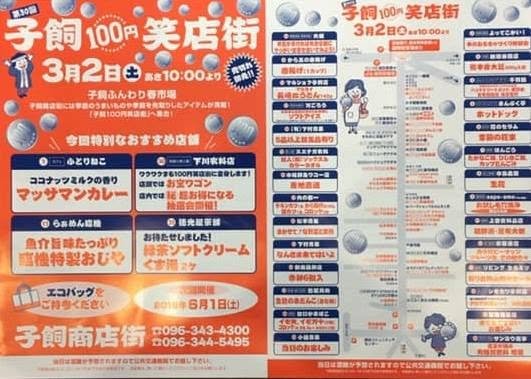 Occasionally, the street association holds events. On Saturday, 3/2, a 100 yen event will be held, where merchants try to price their goods at that level. To support your local merchants, a visit is recommended - but be warned: if you become friends with them, it will take you 10 minutes to buy an egg. - William