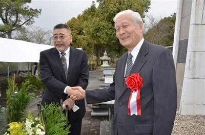 At an event in Tabaruzaka to commemorate the battle, Tani Tateki’s great-grandson, Tani Tadaaki (75), and Saigo Takamori’s great-great grandson, Saigo Takafumi (71), met for the first time, 142 years after the war’s end. Tani was quoted: “He’s physically imposing and shares features of Saigo Takamori,” while Saigo said, “I felt a hint of sharpness behind his gentle expression.” Both issued a statement: “That the peace we enjoy now is a result of the sacrifices of the youth of that time must never be forgotten.”
