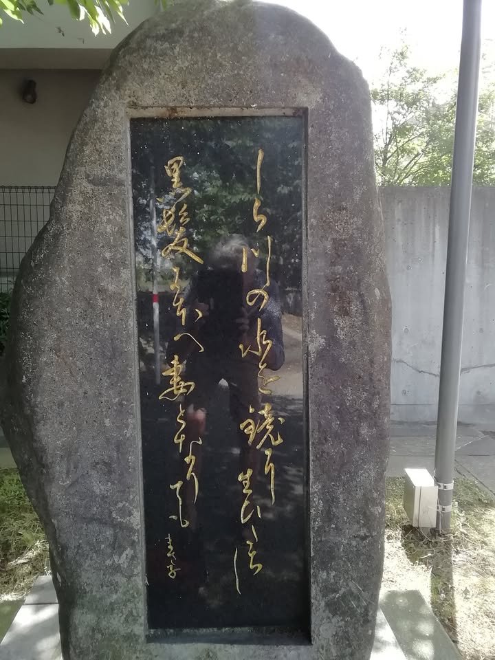 A walk my dog particularly enjoys (not that he disenjoys any walk, but he enjoys some more than others) traverses Meigo and Taiko bridges (the former was used by the Hosokawa clan when they visited Suizenji; the latter hosts the streetcar and was the official route through Kyushu - hence, Kokubu). Being off-lead, my dog requres more attention than this stele between the bridges that had long begged for attention deserved, so I photographed it for later consideraton. Here the mystery begins with two steps: deciphering the calligraphy and considering its meaning.