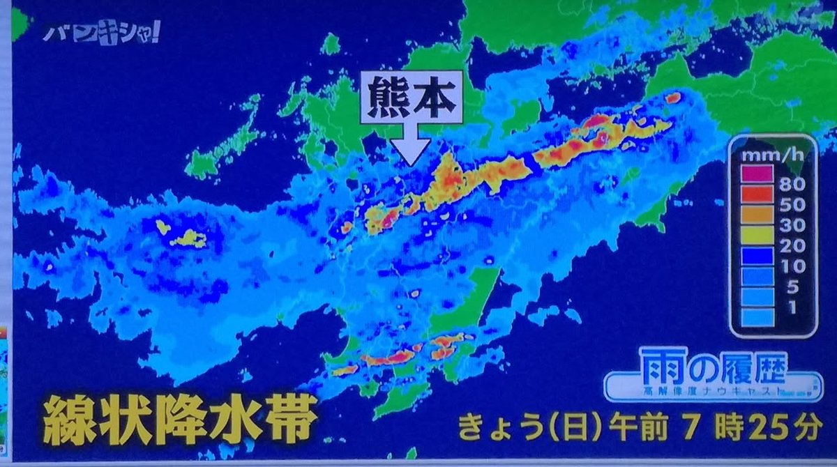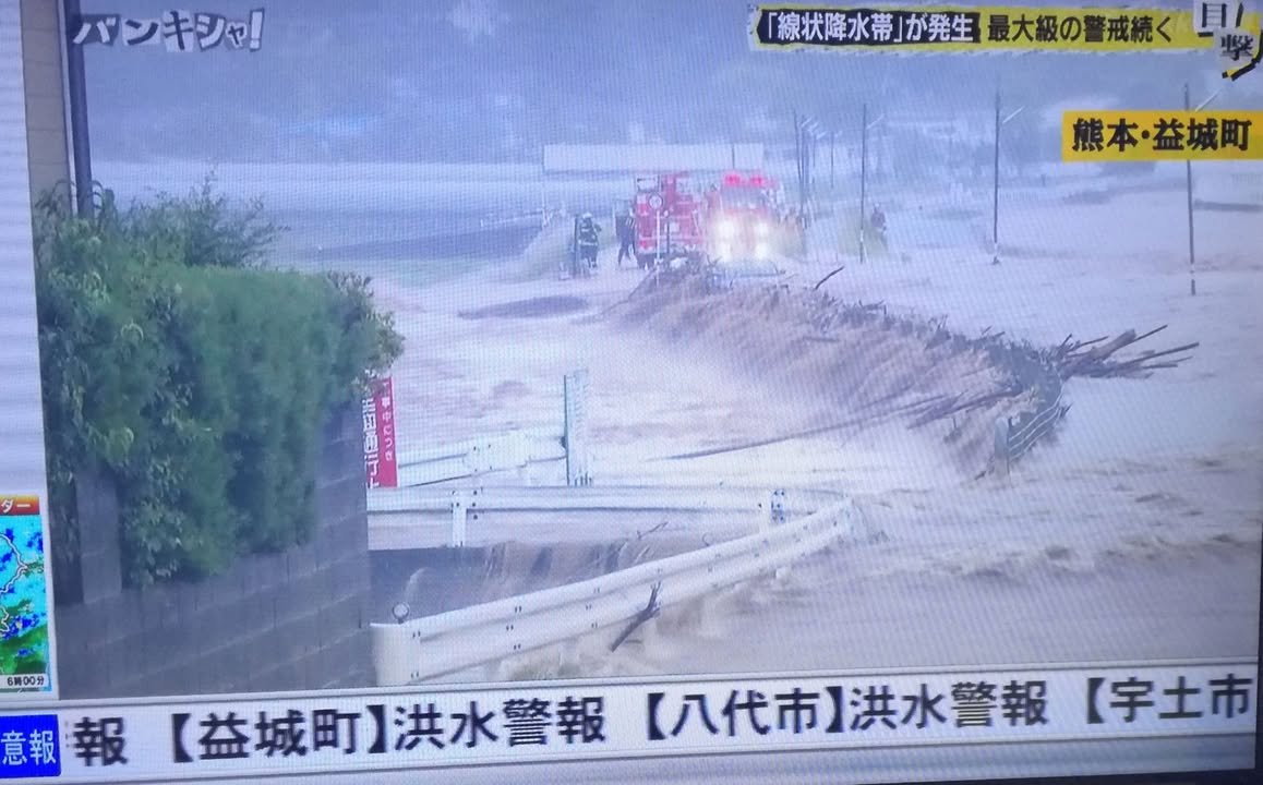 These photos are from a nationally broadcast news program called “Bankisha” and all related to the rain in Kumamoto. I’ll write comments on each one so, if you’re interested, please click or tap on the photos to see my explanations.