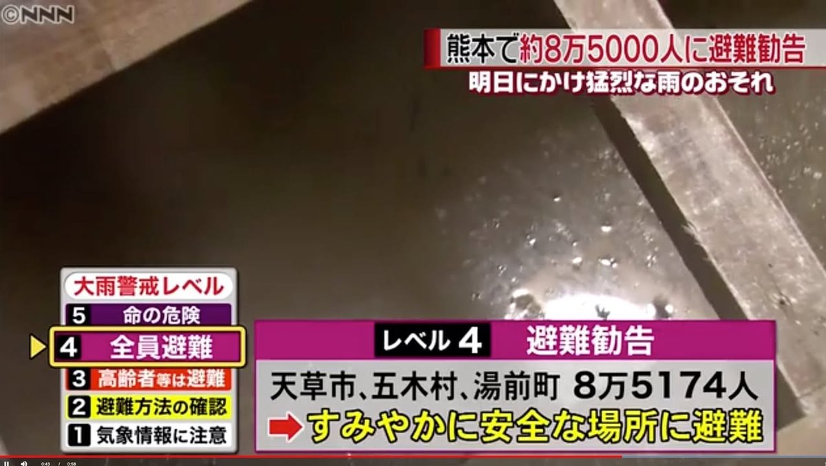 Here’s a link to a video about how more than 80,000 people have been called to evacuate, mostly in the Hitoyoshi and Amakusa areas. For more about how to get information in English about which areas are being evacuated please see my previous post.