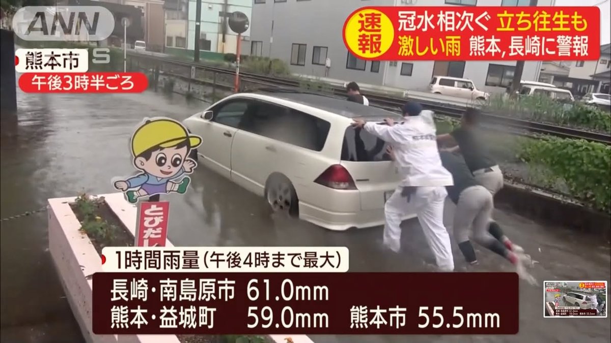 As William indicated, Kumamoto City and other parts of the prefecture experienced some extremely intense rain this afternoon. Click on this link in order to see a report in Japanese: