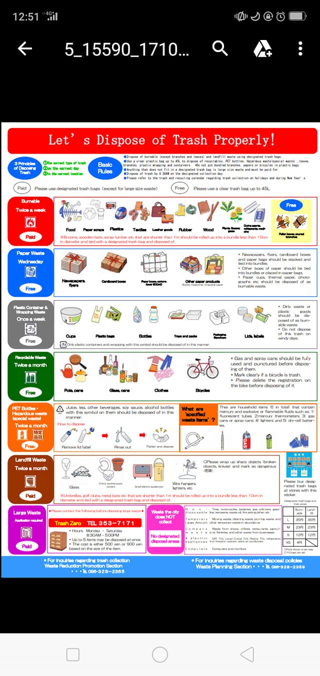 Kirk here. Atsuko posted some useful information about trash disposal. Thanks Atsuko! One of the links she included was to a machine translated web page from the Kumamoto City website: