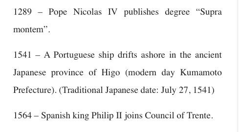 “Francis Xavier reached Japan on 27 July 1549, with Anjiro and three other Jesuits, but he was not permitted to enter any port his ship arrived at until 15 August,[42] when he went ashore at Kagoshima, the principal port of Satsuma Province on the island of Kyūshū.” https://en.wikipedia.org/wiki/Francis_Xavier#Japan_and_China
