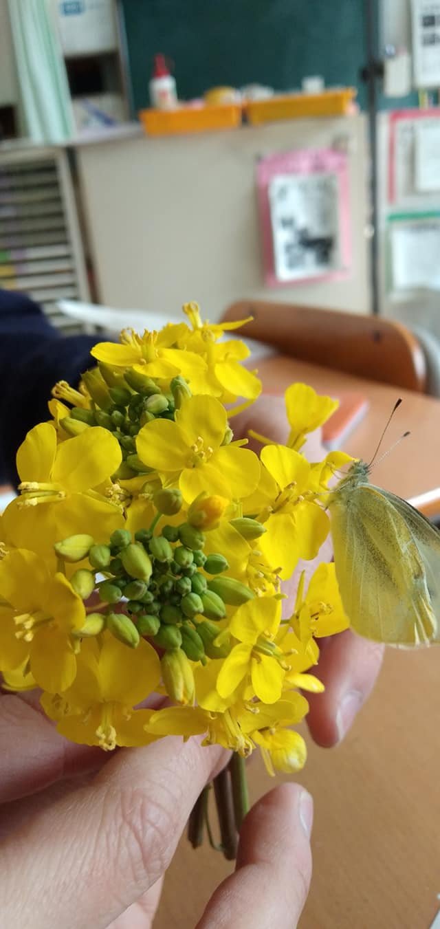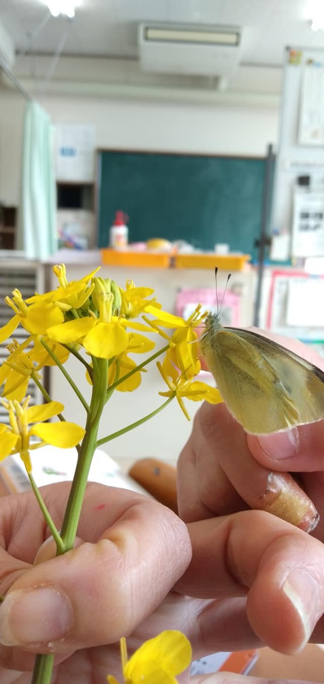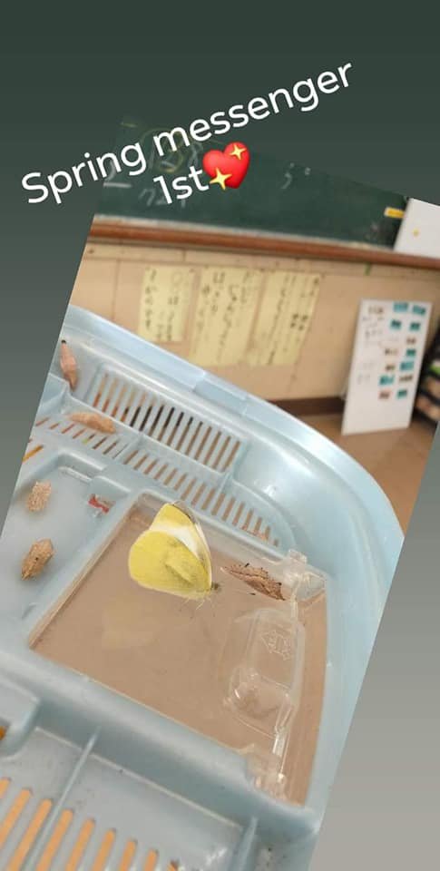 Hi friends. It was cold morning but warm day today. Little spring messenger 1st has been born today. This is モンシロチョウ Monshirochou, cabbage butterfly, small cabbage white butterfly, Pieris rapae. It’s very common in Japan, in Kumamoto. You know it’s named cabbage because its green caterpillar eats cabbage leaves. The butterfly sucks nectar from the rape-flower.Ex, Cabbage, Broccoli, Daikon, Nanohana. The butterfly starts to appear the time the flowers bloom.Yes, it tells spring is coming! Usually, from spring to fall, the pupa becomes butterfly in one week or 10days. But it doesn’t become butterfly during winter. They wait spring comes. If you also find some cabbage butterflies in the field, in the garden, you might also feel spring has come to youーAtsuko(Ü)