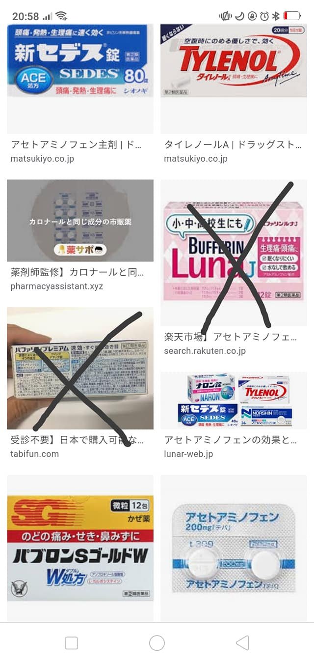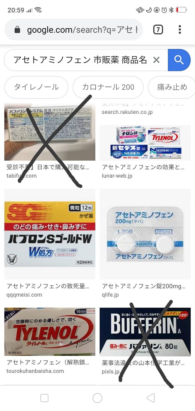 Japanese famous acetaminophen medicine are below. famous ibuprofen are below.❌❌❌ 😱Bafferlin has acetaminophen and ibuprofen BOTH. So you shouldn’t take it!!