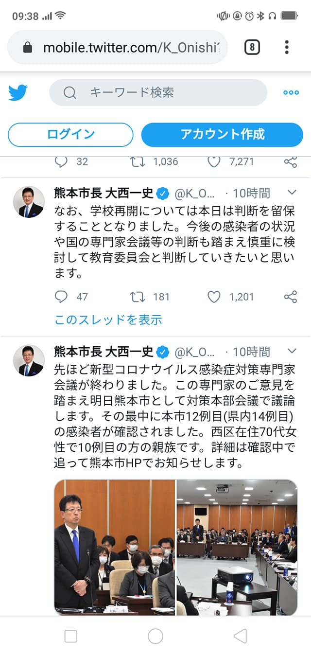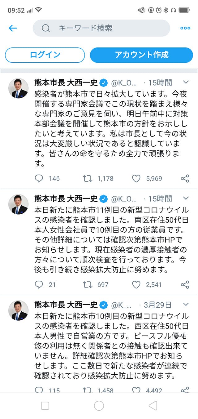 Hi friends. It’s Kumamoto city mayor’s twitter again. You might know the 11th and 12th patients were turned out. The 11th lives in Nishiku (West area).The 10th lives in Minamiku(South area) and the 11th has worked at the 10th office, addition the 12th is 10th’s mother. Yes, now the COVID-19 is spread all over the Kumamoto city without Kitaku, North area. Be careful anywhere you live in.