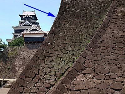 “Mushigaeshi” (武者返し - literally, repelling assailants) were architectural features designed to, well, repel assailants, ranging from uneven ground stonework to complicated walls. Kumamoto Castle is particularly famous for its mushigaeshi. For example, the stones of the walls are placed at random angles to thwart anyone trying to climb them. They also eventually reach a 90° angle. An interesting example is this location, where the builders figured out they’d screwed up the angle so added another wall. We all have bad days, but most of them don’t involve tons of rock.
