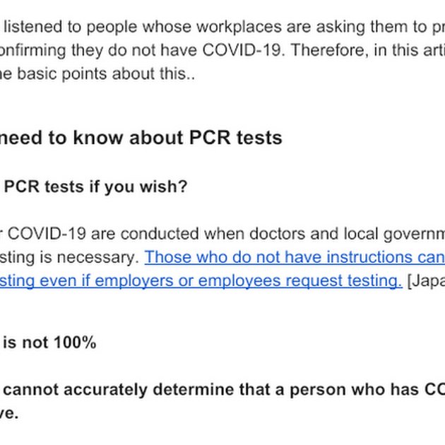 Joe Tomei here. This is an English translation of the Japanese information located at https://note.stopcovid19.jp/n/nbc124bd1d18b There is no negative certificate of COVID-19!