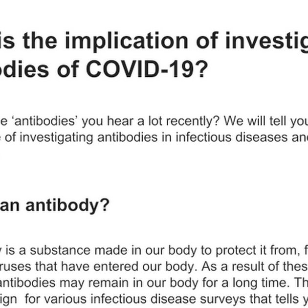 Joe Tomei here with another article translated by the volunteers from the COVID-19 project, located at https://note.stopcovid19.jp/n/n10cd82fecec9 What is the implication of investigating antibodies of COVID-19?