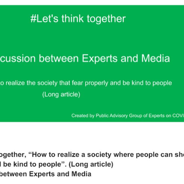 Joe Tomei here. This is an English translation of the Japanese information located at https://note.stopcovid19.jp/n/n3825446f89d7 Let’s think together, “How to realize the society that fear properly and be kind to people”.