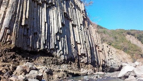 So they built a new bridge bridging the Tateno Gap. Looks good to go to me, but it won’t open until March. If you’re in that neck of the caldera, though, I suggest you park and walk down to the river, where there exists a most excellent example of basaltic columns, which occur when magma cools and does not shrink in the horizontal direction but instead results in the formation of columns. Other sites exist in Kyushu displaying this phenomenon, but this is closest to home. - William