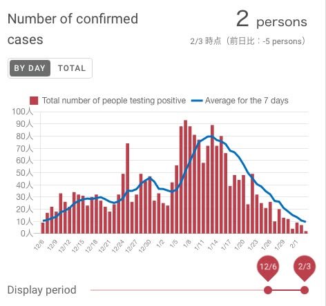 Kirk here with another COVID-19 post. Today I found a useful page that provides COVID-19 statistics for Kumamoto Prefecture in English. The graph you see is from the page. Here’s the URL: