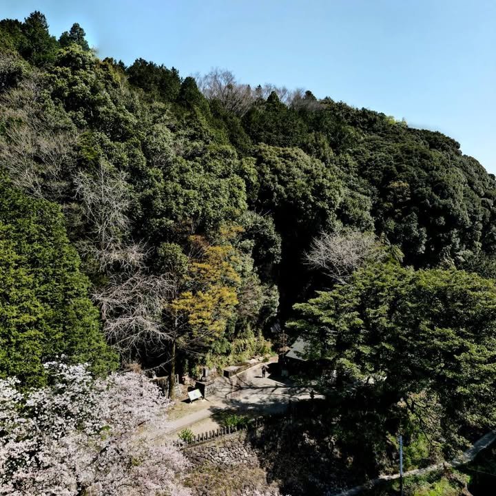 Douglas here. On March 26th, Megumi and I drove to Seta shrine, in Ozu. We wanted to çapture a 360° photo of the cherry tree there. Although the shrine has a long history, the torii and the shrine building were erected after the 2016 earthquake destroyed the older structures. Of particular interest is the huge boulder that rests beside the new shrine building. This boulder was dislodged from the high cliff behind the shrine and crashed down during the earthquake, completely demolishing the old shrine. This is the first time to test upload 360° images here. We hope that it succeeds.